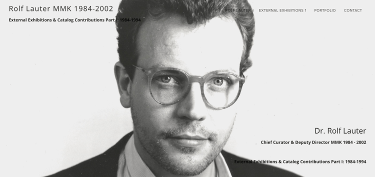 Early 1984 Appointment by Peter Iden, the founding director of the Frankfurt Museum für Moderne Kunst (1978-1988), as the first curator of the Museum. During 1984-1991 responsible coordinator for the architecture of the new building and the museography in cooperation with the Viennese architect Hans Hollein. Lauter has been Chief Curator and Deputy Director from 1991 to 2002. From 1984-2002 he was responsible for the organization, budgeting and administration of the museum as well as curator for the collection and special exhibitions.